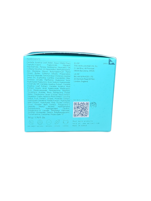 Centella Asiatica Leaf Water, Aqua (Water/Water), Caprilic/Capric Triglyceride, Glycerin, Niacinamide, Persea Gratissima (Avocado) Oil, Cetearyl Alcohol, 1, 2-Hexanediol, Methylpropanediol, Butylene Glycol, Butyrospermum Parkii (Shea) Butter, Cetearyl Olivanate, Propanediol, Glyceryl Stearate, Simmondsia Chinansis (Jojoba) Seed Oil, Euphorbia Cerifera (Candelilla) Wax, Sorbitan Olive, Panthenol, Hyaluronic Acid, Hydrolyzed Hyaluronic Acid, Sodium Hyaluronic Acid, Sodium Hyaluronate, Cheramide NP, Centella Asiatica Extract, Centella Asiatica Root Extract, Asian Acid, Asiaticoside, Meccasstic Acid, Excasssopt, Electrotic Acid, Excasssopt, Pyst, Pantomyl Acto, Rock, Allantic Leaf Extract, Centella